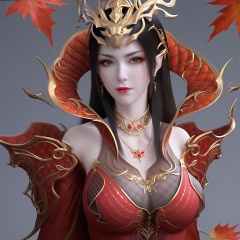 (score_9),upper body,<lora:斗尊美杜莎-apony-000008:0.83>,meidusha,1girl,solo,hair ornament,tiara,long hair,black hair,pointy ears,earrings,(gray-blue eye),cocked eyebrow,collar,popped collar,jewelry,shoulder armor,metal collar,necklace,detached sleeves,long sleeves,see-through sleeves,red dress,(glamor),curvy,mature_female,collarbone,pointy breasts,puffy breasts,(large teardrop breasts),large breasts,(see-through cleavage),BREAKlooking at viewer,BREAK<lora:Expressive_H-000001:0.8>,light blush,Expressiveh,body blush,<lora:e肤色滑块:0.25>,(pale_skin),(light_skin),<lora:皮肤凹痕:1.2>,<lora:RealisticSkinv1_ponyv6_loraplus:0.3>,real skin,ultra-detailed skin texture,detailed textures,BREAK<lora:e色温:0.35>,simple background,grey background,twig,autumn leaves,branch,falling leaves,Tyndall effect,available light,depth of field,lens_flare,