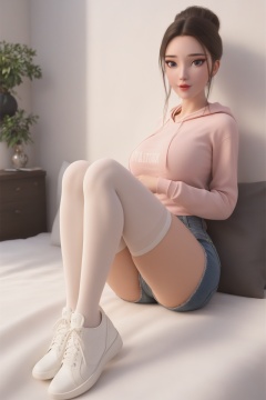 baishe,<lora:baisheXL:0.7>,1girl,solo,score_9,score_8_up,score_7_up,32K UHD,8k,4k,best quality,extremely detailed cg 8k wallpaper,ultra-detailed,masterpiece,sharp focus,unconventional supreme masterpiece,masterful details,temperate atmosphere,with a high-end texture,luxurious sharp focus,intense,dynamic cinematic color,located artistic,Fashion and art,elegant and sophisticated,innovative use of light and shadow,decorative,allegorical,symbolic,with a high-end texture,low saturations,dim lighting,day,detailed bedroom,sitting,pale skin,looking at viewer,big breasts,sweatshirt,thighhighs,shoes,denim_shorts,