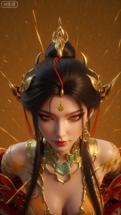 adorned with a crown and a necklace. The woman's eyes are adorned with gold