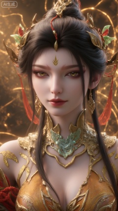 adorned with a crown and a necklace. The woman's eyes are adorned with gold