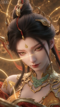 adorned with a crown and a necklace. The woman's eyes are adorned with gold