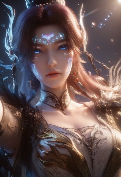 supermodel,score_8_up,score_7_up,hyperdetailed,hyperrealistic,volumetric lighting,focus on face,textured skin,eye lighting,SkinHairDetail,zPDXL,intricate and refined delicate details,unreal engine,very attractive,ultra high res,Expressiveh,realistic skin,score_9,score_8_up,score_9,score_8_up,1 girls,high cold face,yujie,breasts,jewelry,beautiful eyes,detailed eyes,best quality,<lora:曦和众生愿:0.8>,blue eyes,brown hair,dress,glowing,hair ornament,looking at viewer,portrait,reaching,realistic,xihe,