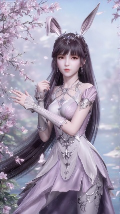 1 girl,In the flowers,rabbit ears,earrings,eyelashes,a charming face,glowing lips,clavicle,shoulder exposure,floating petals,dreamy and beautiful,bikini,medium breasts,cleavge,(upper_body:1.6),(masterpiece, top quality, best quality, official art, beautiful and aesthetic:1.2),xwhd,1 girl, solo, long hair, brown hair, black hair, hair accessories, high socks, dress, animal ears, very long hair, pink dress, rabbit ears, high heels, 1 girl, solo, long hair, brown hair, hair accessories, high hair, dress, animal ears, very long hair, rabbit ears, collar, pink dress, metal collar.
