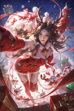 MLiang,Sdwang,BREAKMLiang rn,1girl,breasts,gift,solo,brown hair,long hair,looking at viewer,box,ribbon,antlers,christmas,gift box,cleavage,large breasts,hair ornament,candy cane,bell,horns,smile,brown eyes,outstretched arms,fur trim,animal ears,bow,BREAKbest-quality,masterpiece,[with a high-end texture],(extremely detailed CG unity 8k wallpaper,masterpiece),Dramatic Lighting,Ray Tracing,(8k resolution),best quality,absurdres,detailed shading,perspective,reoen,depth of field,absurdres,masterpiece,with a high-end texture,full body,mvery awe,aesthetically pleasing,masterpiece,best quality,amazing quality,very aesthetic,ultra-detailed,high resolution,8k,BREAK<lora:lolart-ill11-v5.1:0.3>,<lora:zhongguoduliu-v3-illustrious:0.3>,<lora:MLiang_园子-000017:0.64>,<lora:20250716-1752629012270:0.5>,