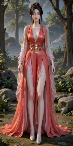 1girl, solo, outdoors, dress, red dress,  chinese clothes, black hair, full body,  bare legs, breasts, realistic,high heels, legs,long legs,lying,