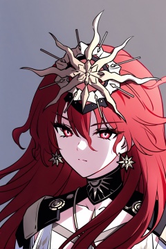 ovc,meiheyeragu,augusta\(Wuthering Waves\),solo,long hair,red eyes,red hair,1girl,looking at viewer,upper body,closed mouth,simple background,