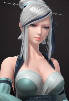 score_9,looking_at_viewer,upper body,(large breasts:0.8),xiaomeng,1girl,solo,white hair,hair ornament,bare shoulders,grey eyes,lips,single hair bun,dress,earrings,cleavage,jewelry,detached sleeves,streaked hair,hair stick,makeup,wide sleeves,high heels,(simple background,pure black background,black background:1.1),perfect_anatomy,<lora:QQSponyxiaomengV1:0.8>,