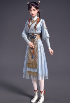 (standing:1.1),(full_body:1.1),(looking at viewer:1.1),facing viewer,direct gaze,<lora:YQ_pony_xulingxi2_V4:0.8>,q1528437228,1girl,solo,jewelry,earrings,hair ornament,black hair,lips,chinese clothes,dress,forehead mark,green eyes,hair bun,long hair,makeup,brown hair,hair stick,long sleeves,tassel,(boots:1.1),white pantyhose,braid,blue eyes,brown eyes,double bun,BREAK simple background,pure black background,black background,perfect anatomy,