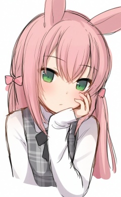 masterpiece,absurdres,best quality,loli,petite,high quality,chromatic_aberration,//,1girl, solo, green_eyes, long_sleeves, long_hair, white_background, sleeves_past_wrists, simple_background, upper_body, animal_ears, bow, blush, closed_mouth, looking_at_viewer, plaid, hair_between_eyes, hand_on_own_face, hair_bow, shirt, dress, grey_dress, sleeveless, white_shirt, plaid_dress, sleeveless_dress, hand_on_own_cheek, pink_hair, cropped_torso, hand_up, pink_bow, ears_down, sketch, head_rest, black_bow//,//,<lora:gancheng——【noob】hans:0.88>,