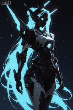 mecha_girl,1girl, solo,single hair bun,very long hair,