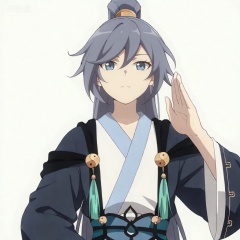 looking at viewer,canzhuo_style,fu_hua,ponytail,hanfu,long sleeves,ornament,Chinese clothes,taoist robes,boots,gold_trim,jewelry,Tassel