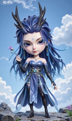 chibi, cute, little girl, (full body:1.3),Xaorun,chibi, cute, little girl, (full body:1.3),There are dragon horns on his head,(masterpiece:1.2),best quality,absurdres,masterpiece,original,extremely detailed wallpaper,perfect lighting,1girl,solo,looking at viewer,(cowboy_shot:1.3),long hair,high heels,blurry background,depth of field,motion blur,(long dress:1.23),china_dress,chinese_style,bare shouders,crystal_earrings,headpiece,hair_tie,chest_jewel,gem,necklace,jewelry,The background features a ink dragon sky,Xaorun