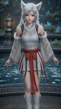 This is a Q-version ancient-style little girl in full body. As a Q-version character, the overall picture is fresh and cute.1girl, white hair, solo, animal_ears, long hair, perfect body, scenery, sharp focus, best quality, masterpiece, detailed outfit, illustration, perfect eyes, finely detailed beautiful anime eyes, realistic skin, intricate details, best lighting, depth of field, ultra high resolution, full body, full body shot, long shot, masterpiece, best quality, standing in grassland, cinematic lighting, wide angle view, depth of field,CGI,oll,figure,Q-version character