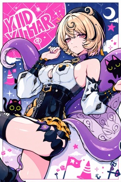 1girl,::,__artist__,year 2024,(drop shadow:1.4),(close-up:0.8),(shadow:1.2),(hands up:1.2),(border:1.2),(outside border:1.2),(hand up:1.2),(character name:1.2),from side,hand up,closed mouth,upper body,high contrast,holding cup,frown,looking at another,looking at viewer,rope,portrait,drop shadow,sparkle,^ ^,flag,moon,bug,notice lines,cloud,spider,traffic cone,star \(symbol\),circle,silk,traffic light,arrow \(symbol\),spider web,pink theme,sun,cube,crescent moon,flower,sunlight,colorful,very awa,masterpiece,best quality,newest,highres,absurdres,black cat,<lora:Yidhari-will-Tanger:0.9>,Yidhari Murphy \(Zenless Zone Zero\),clothes: Yidharidef corset,Yidharidef Tentacle-like tail,Yidharidef single black garter,Yidharidef detached sleeves,Yidharidef Beret,1girl,breasts,blonde hair,black headwear, torn right single thighhigh,short hair,black footwear,high heels,ahoge,tentacles,garter straps,bangs,