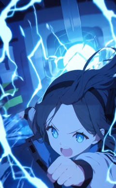 masterpiece,highres,absurdres,newest,best quality,high quality,loli,petite,chromatic_aberration,//,1girl,aris_\(blue_archive\),blue_eyes,solo,jacket,open_mouth,long_hair,black_hair,incoming_attack,ringed_eyes,blue_theme,long_sleeves,clenched_hand,forehead,electricity,white_jacket,hairband,v-shaped_eyebrows,train,upper_teeth_only,looking_at_viewer,black_hairband,one_side_up,teeth,upper_body,//,<lora:ba44——【noob】hans:1>,