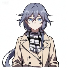 looking at viewer,manga_style,fu hua,coat,jacket,black legwear,boots,double-breasted,knee boots,lace-up boots,black footwear,checkered scarf