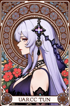 <lora:夏穆风·滤镜·ILL:0.8>,Black Swan \(honkai: star rail\),art nouveau,long hair,1girl,profile,jewelry,flowers,hair ornament,necklace,solo,from side,depth of field,masterpiece,best quality,very aesthetic,alternate costume,alternate costume,2024,2023,perfect composition,ultra-detailed,extreme aesthetic,masterpiece,best quality,good quality,newest,year 2024,year 2023,very aesthetic,absurdres,looking_at_viewer,colorful,makeup,