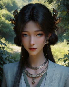 score_9,score_8_up,score_7_up,detailed face,detailed body,outdoors,upper body,<lora:Pony-梅凝-正式版v1:1>,1girl,meining,black hair,long hair,jewelry,hair ornament,earrings,necklace,hanfu,looking at viewer,mature_female,long face,light_blue_eyes,red lips,