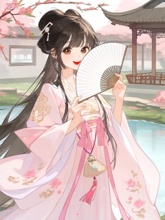 这幅数字动漫风格的插图描绘了一位古典的年轻佳人,她有着长长的、柔顺的黑色长发,盘成一个精致的发髻,发髻上插着一支镶嵌着珍珠的发簪。她有一双温柔含情的棕色眼睛和樱桃般的红唇。她身着一件淡粉色的汉服,汉服上绣着精美的金色花纹和粉色花朵图案,宽大的衣袖随风飘动。她的腰间系着一条粉色的丝带,丝带上挂着一个香囊。她手持一把白色的折扇,微微遮住半张脸,露出羞涩的笑容。背景是一片古色古香的庭院,有盛开的桃花、潺潺的流水和古朴的亭台楼阁。整体风格古典雅致,色彩柔和,线条细腻,展现出东方女性的温婉之美。