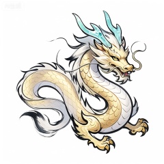 这是国风水墨风格的游戏神龙图标。神龙身形修长,蜿蜒盘旋,周身散发着金色的光芒。它的鳞片用淡墨和金色晕染,层次分明,仿佛每一片都蕴含着无尽的力量。龙角呈淡蓝色,晶莹剔透,犹如水晶雕琢而成。龙须细长飘逸,在风中轻轻舞动。龙的眼睛炯炯有神,闪烁着智慧的光芒。它的爪子锋利无比,呈金色,仿佛能撕裂一切。图标整体以水墨的浓淡变化来表现神龙的立体感和动态感,线条简洁却富有韵味,背景为白色,让神龙的形象更加突出,尽显威严与霸气。