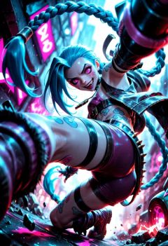 jinx, league of legends, dynamic pose, Smooth_Quality, SmoothNoob_Quality, solo, 1girl