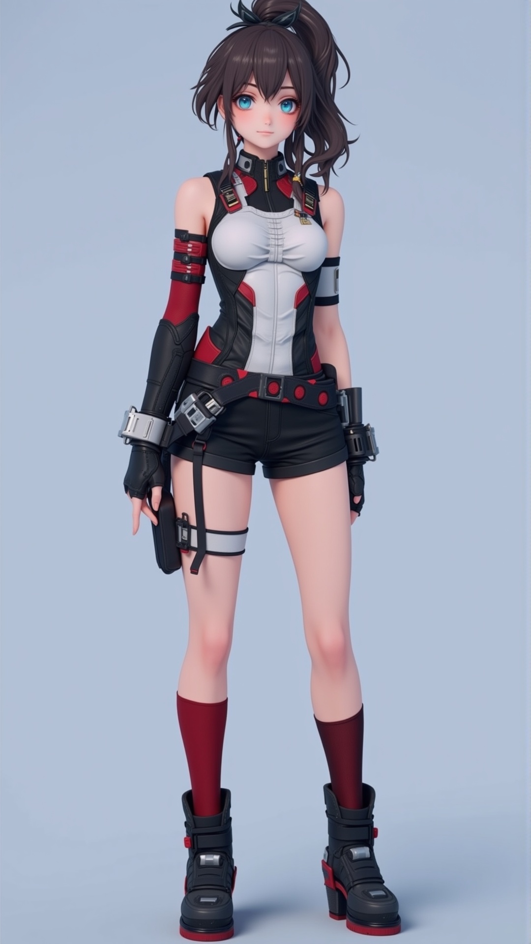 超跃薇丹蒂蓝眸褐发赛博朋克 - 超跃薇丹蒂:红带高马尾黑短裤机甲少女8K