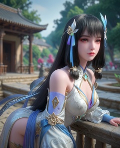 (oriental architecture, elegant decor, sophisticated style:1.1),(Leaning forward, her fingers lightly playing with a lock of hair, she emanates a playful flirtation:1.1),(breasts:1.2),<lora:XL百炼成神云落透纱:0.9>,miss yunluobaiyi,white dress,hair flower,hair tubes,detached sleeves,black hair,hair ribbon,blunt bangs,waist blue mesh,orange eyes,tassel,see-through overskirt,jewelry,, zPDXL2, score_9, score_8_up, score_7_up BREAK realistic, masterpiece,best quality, highly detailed,, zPDXL3, zPDXL2,zPDXL, zPDXLxxx, zPDXLrl,