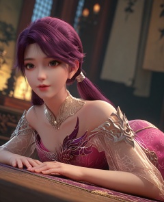 (oriental architecture, elegant decor, sophisticated style:1.1),(lying on stomach:1.1),(breasts:1.2),<lora:XL百炼成神罗嫣:0.95>,miss luoyan,long hair,purple hair,dress,low twintails,twintails,detached collar,bare shoulders,lips,jewelry,pink dress,eyelashes,teeth,, zPDXL2, score_9, score_8_up, score_7_up BREAK realistic, masterpiece,best quality, highly detailed,, zPDXL3, zPDXL2,zPDXL, zPDXLxxx, zPDXLrl,
