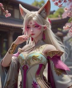 (oriental architecture, elegant decor, sophisticated style:1.1),(holding object:1.1),(breasts:1.2),<lora:XL16克金玩家小狸:0.95>,1girl,white china dress,facial mark,purple eyes,pink streaked hair,white hair,long hair,fox ears,jewelry,earrings,pink shawl,bracelet,, zPDXL2, score_9, score_8_up, score_7_up BREAK realistic, masterpiece,best quality, highly detailed,, zPDXL3, zPDXL2,zPDXL, zPDXLxxx, zPDXLrl,