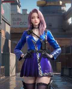 (oriental architecture, elegant decor, sophisticated style:1.1),(Standing with legs wide apart, hands on hips,:1.1),(breasts:1.2),<lora:XL16穿越火线云悠悠保卫者:0.95>,miss yunyouyou,blue jacket,purple overskirt,brown eyes,pink hair,long hair,earrings,jewelry,black choker,belt,black gloves,thigh holstered,mauve thighhighs,black heels,, score_9,score_8_up,score_7_up,score_6_up,score_5_up,score_4_up,3d rendering,tag1,tag2, Cinematic Lighting,backlighting,, zPDXL3, zPDXL2,zPDXL, zPDXLxxx, zPDXLrl,