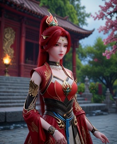 (oriental architecture, elegant decor, sophisticated style:1.1),(practicing yoga, tree pose:1.1),looking at viewer,(breasts:1.2),<lora:XL斗破苍穹唐火儿:0.95>,miss tanghuoer,red dress,brown eyes,red hair,ponytail,hair ornament,long hair,choker,asymmetrical sleeves,sash,skirt,, score_9,score_8_up,score_7_up,score_6_up,score_5_up,score_4_up,3d rendering,tag1,tag2, Cinematic Lighting,backlighting,, zPDXL3, zPDXL2,zPDXL, zPDXLxxx, zPDXLrl,