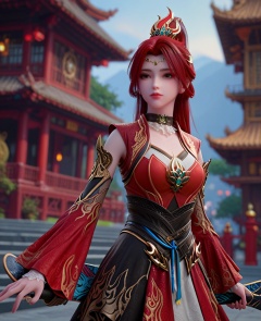 (oriental architecture, elegant decor, sophisticated style:1.1),(skateboarding moves:1.1),looking at viewer,(breasts:1.2),<lora:XL斗破苍穹唐火儿:0.95>,miss tanghuoer,red dress,brown eyes,red hair,ponytail,hair ornament,long hair,choker,asymmetrical sleeves,sash,skirt,, score_9,score_8_up,score_7_up,score_6_up,score_5_up,score_4_up,3d rendering,tag1,tag2, Cinematic Lighting,backlighting,, zPDXL3, zPDXL2,zPDXL, zPDXLxxx, zPDXLrl,