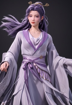 (cowboy shot:1.2),(masterpiece:1.1),(best quality:1.2),(intricate details),(looking at viewer:1.1),facing viewer,direct gaze,<lora:YQ_pony_yunxiaoxianzi2.0_V5:0.8>,q1528437228,1girl,solo,long hair,purple hair,purple eyes,hair ornament,chinese clothes,dress,jewelry,earrings,hair stick,long sleeves,sash,facial mark,single hair bun,wide sleeves,blue eyes,boots,black hair,shawl,BREAK simple background,pure black background,black background,perfect anatomy,