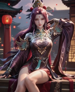 (oriental architecture, elegant decor, sophisticated style:1.1),(sitting with her back arched:1.1),(breasts:1.2),<lora:XL16牧神记司幼幽:0.95>,miss siyouyou,aubergine tiered gown,brown eyes,forehead mark,red violet hair,very long hair,traditional chinese updo with long cascading hair,jewelry,wide flowing sleeves,shawl,black fingerless gloves,amaranth underskirt,, score_9,score_8_up,score_7_up,score_6_up,score_5_up,score_4_up,3d rendering,tag1,tag2, Cinematic Lighting,backlighting,