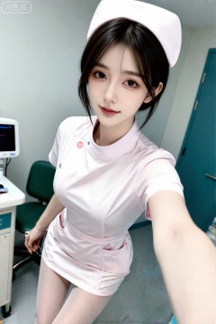 杰作,最佳画质,高质量,,(黑色色头发:1.4),(超长腿:1.3),(细腿:1.4),一个女孩,18岁超美可爱护士,五官端正,精致妆容,高挑身材,细腻陶瓷水嫩肌肤,冷白皮,随机时工作场景,记录一天工作的自拍照片,随机的动作,随机的光影,随机的背景,随机的表情,总体有很多的不确定性,饱满挺拔,s曲线,真人实拍,高清画质,衣服紧绷,