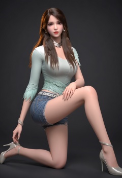 score_9,looking_at_viewer,(large breasts:0.8),1girl,solo,brown hair,long hair,realistic,brown eyes,lips,jewelry,earrings,shirt,necklace,red lips,denim,shorts,belt,high heels,(simple background,pure black background,black background:1.1),perfect_anatomy,<lora:QQSponybaizhiV1:0.8>,