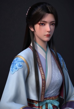 score_9,looking_at_viewer,upper body,(large breasts:0.8),1girl,solo,black hair,long hair,chinese clothes,realistic,closed mouth,blue eyes,lips,hanfu,long sleeves,expressionless,dress,sash,high heels,(simple background,pure black background,black background:1.1),perfect_anatomy,<lora:QQSponyylqiangweiV1:0.8>,