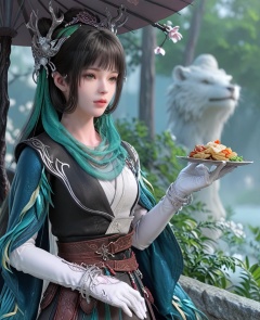 (oriental architecture, elegant decor, sophisticated style:1.1),(eating:1.1),(breasts:1.2),<lora:XL剑网三陈月宗主:0.95>,miss chenyue,dress,black hair,hair ornament,earlock,blunt bangs,white gloves,belt,scarf,bracelet,, score_9,score_8_up,score_7_up,score_6_up,score_5_up,score_4_up,3d rendering,tag1,tag2, Cinematic Lighting,backlighting,