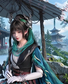 (oriental architecture, elegant decor, sophisticated style:1.1),(w arms:1.1),(breasts:1.2),<lora:XL剑网三陈月宗主:0.95>,miss chenyue,dress,black hair,hair ornament,earlock,blunt bangs,white gloves,belt,scarf,bracelet,, score_9,score_8_up,score_7_up,score_6_up,score_5_up,score_4_up,3d rendering,tag1,tag2, Cinematic Lighting,backlighting,