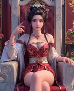 (oriental architecture, elegant decor, sophisticated style:1.1),(sitting on a throne of fire:1.1),(breasts:1.2),<lora:XL暗河传医者白鹤淮:0.8>,miss baihehuai,chinese clothes,detached collar,red corset,red overskirt,hair bun,black hair,hair ornament,hanging hair,forehead mark,black eyes,shoulder mesh,jewelry,floral print,, score_9,score_8_up,score_7_up,score_6_up,score_5_up,score_4_up,3d rendering,tag1,tag2, Cinematic Lighting,backlighting,