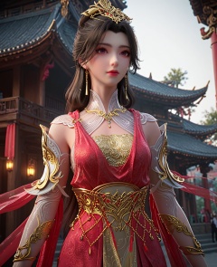 (oriental architecture, elegant decor, sophisticated style:1.1),(rushing out of tsunami:1.1),(breasts:1.2),<lora:XL长生界赵琳儿:0.95>,miss zhaoliner,red dress,golden bra,see-through sleeves,sash,see-through collar,chain ornament,shawl,pelvic curtain,purple eyes,black hair,earrings,hair ornament,long hair,jewelry,, score_9,score_8_up,score_7_up,score_6_up,score_5_up,score_4_up,3d rendering,tag1,tag2, Cinematic Lighting,backlighting,