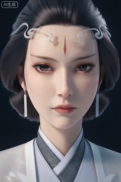 score_9_up,1girl, solo, looking at viewer, short hair, black hair, jewelry, closed mouth, earrings,black background, black eyes, lips, portrait, forehead, forehead mark,ShuiYue,
