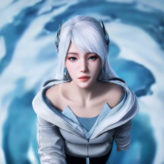 masterpiece,best quality,cinematic,(ultra-detailed),perfect composition,(realistic:2),intricate details,absurdres,detailed face,high quality,high res,8K,1girl,solo,hair ornament,long hair,cowboy_shot,hoodie,jewelry,earrings,white hair,bare shoulders,looking at viewer,parted lips,leggings,