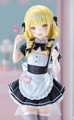 masterpiece,absurdres,best quality,loli,petite,high quality,chromatic_aberration,//,fujita_kotone,1girl,blonde_hair,solo,apron,thighhighs,yellow_eyes,virtual_youtuber,white_thighhighs,looking_at_viewer,braid,twin_braids,wrist_cuffs,smile,bow,white_apron,skindentation,dress,maid,black_bowtie,black_dress,open_mouth,bowtie,black_bow,zettai_ryouiki,long_hair,short_sleeves,frilled_apron,blush,fangs,maid_apron,frills,pleated_dress,puffy_sleeves,hair_ribbon,blurry_background,detached_collar,puffy_short_sleeves,ribbon,thighs,heart,twintails,blurry,:d,grey_thighhighs,hands_up,waist_apron,black_ribbon,hair_over_shoulder,short_dress,alternate_costume,standing,skirt,cowboy_shot,//,<lora:PVC7——【noob】hans:1>,