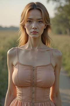 HDR photo of cinematic film still,woman,looking at viewer,dress,front view,upper body,outdoors, <lora:20251211_TinFlux1ClothesSliderLora_v1A:0.7>