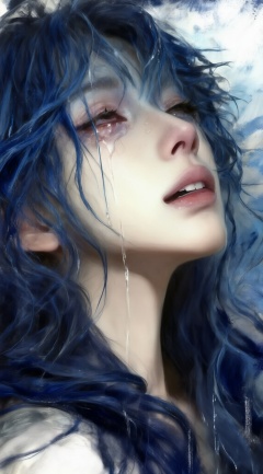 a digital illustration shoot from a close-up camera angle about an expressive portrait of a girl with blue hair,tears streaming down her face,the image also shows a water drop hanging from her hair,on the middle of the image,a young woman appears to be in her early twenties,with her eyes closed and her mouth slightly open,showing her teeth,she has long,wavy,dark blue hair that falls down her back,her expression is one of sadness and tears,with a small droplet of water on her face,indicating that she is crying,the background is abstract with a mix of light and dark blue tones,creating a moody atmosphere,the style is reminiscent of anime or manga,with smooth textures and a soft,painterly quality,, Negative prompt: ng_deepnegative_v1_75t,(badhandv4:1.2),EasyNegative,(worst quality:2),,nsfw, Steps: 30, Sampler: Euler, CFG scale: 4.0, Seed: 1521625433, Size: 1142x2048, Model hash: 9768b098f7, Model: ZOZ_千问大模型~超强泛化改良版_v1.0.safetensors, Denoising strength: 0, RNG: CPU, Lora 1: ZOZ_厚涂水彩~千问, Lora Hash 1: 68a42c4795, Lora Weight 1: 0.8, vae_name: automatic