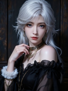 Photograph of a pale-skinned, androgynous person with platinum blonde hair styled in loose waves, wearing a black dress with white cuffs, a black choker with chains, and a pendant. They pose against a dark, textured wooden background, exuding a gothic, mysterious vibe., Steps: 30, Sampler: Euler, CFG scale: 3.5, Seed: 230255695, Size: 768x1024, Model hash: f303b7601a56500301a9331622d6c3bad39be8ec7fd75b86392dc62288f41d0a, Model: ZOZ_人像特摄_写实_00001_.safetensors, Denoising strength: 0, RNG: CPU, Lora 1: ZOZ_国漫.safetensors, Lora Hash 1: 6e7c10ec35f71b3cdb57582a04b8182b678a2ae2b3d430e357e0674079d60934, Lora Weight 1: 0.8, vae_name: automatic