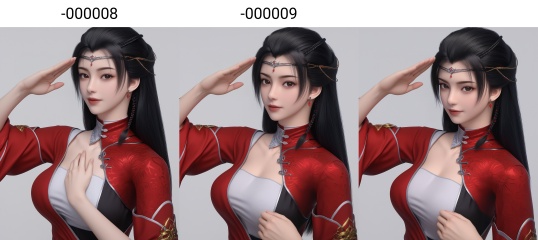 masterpiece,best quality,absurdres,highres,BREAK(glamor:1.1),slender,1girl,solo,<lora:流风霜ill-000008:0.83>,long hair,black hair,hair ornament,jewelry,forehead ornament,earrings,white inner top,high collar,red silk robe,diagonal closure,sleeves with gold trim,golden chains at waist,collarbone,(large breasts),looking at viewer,(salute:1.1),one hand salute,BREAKsimple background,white background,