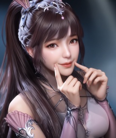 masterpiece,best quality,absurdres,highres,BREAK(glamor:1.1),slender,1girl,solo,<lora:小舞-ill:0.85>,xiaowu,long hair,brown hair,hair ornament,ponytail,bunny ears,brown eyes,jewelry,braid,see-through,pink dress,looking at viewer,front view,(fingersmile),upper body,light blush,BREAKsimple background,black background,rim light,Tyndall effect,Volumetric Lighting,Cinematic Lighting,realistic,depth of field,