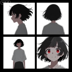 动漫风格,露卡,一个女孩,四格分镜,四格分镜,露卡, 不同运镜和角度,不同的视角和景别,动漫风格,